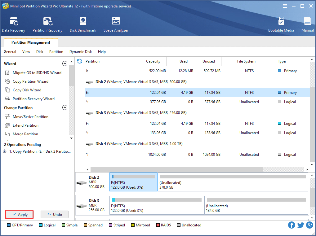 - Клонирование. Minitool Partition Wizard копирует отдельные разделы и вставляет их в свободное пространство. Если на ПК установлен дополнительный накопитель, можно клонировать диск полностью.